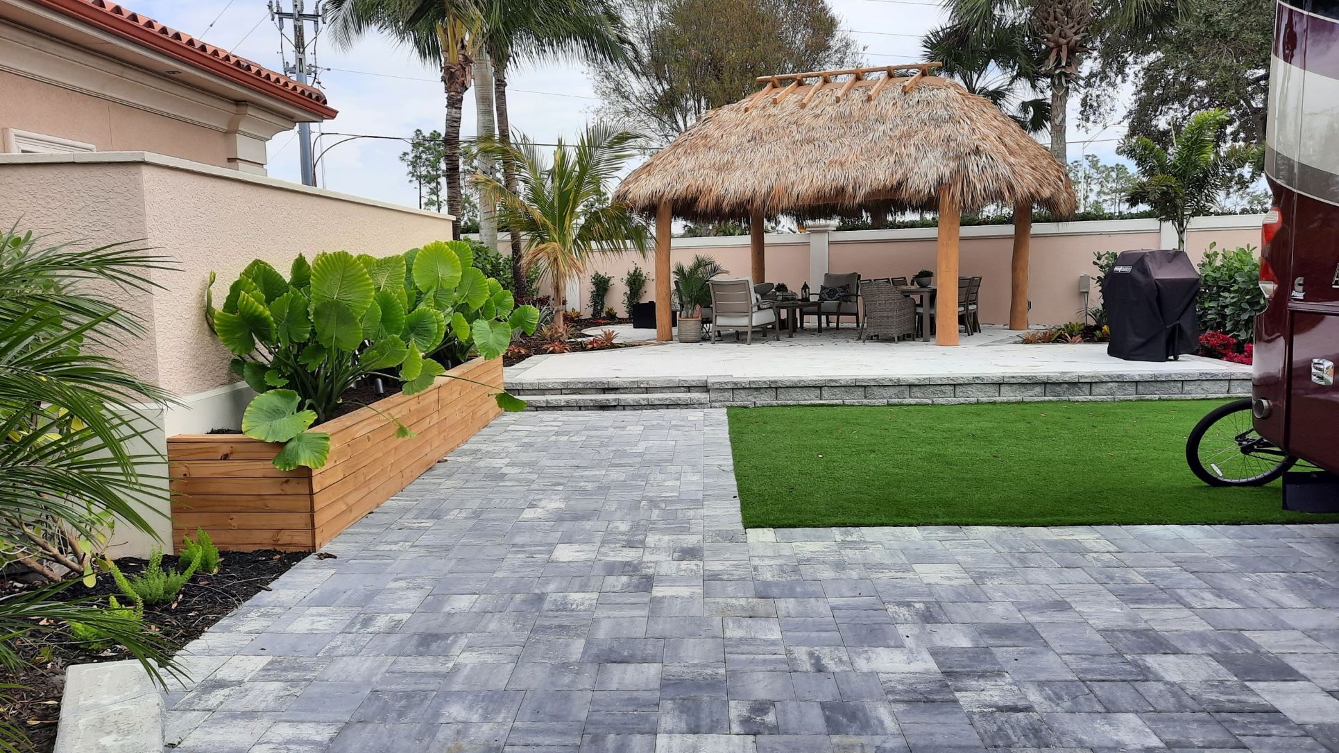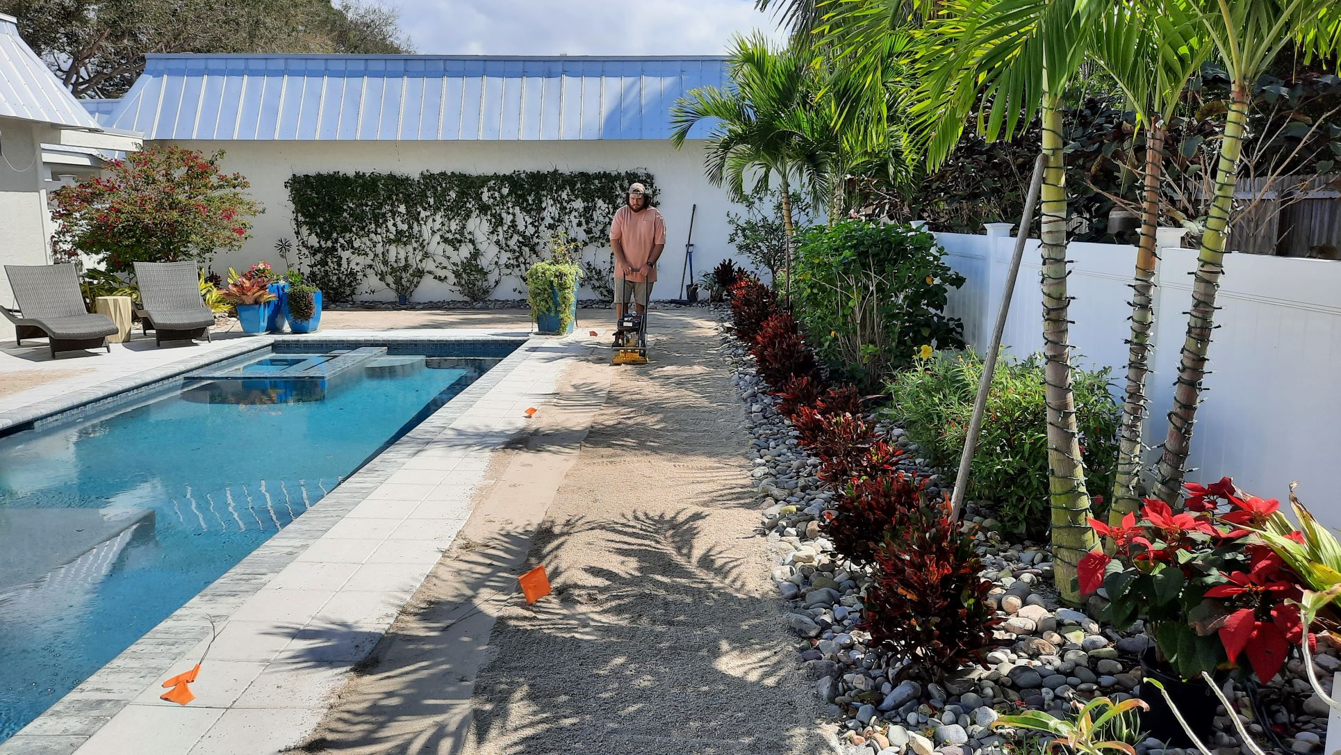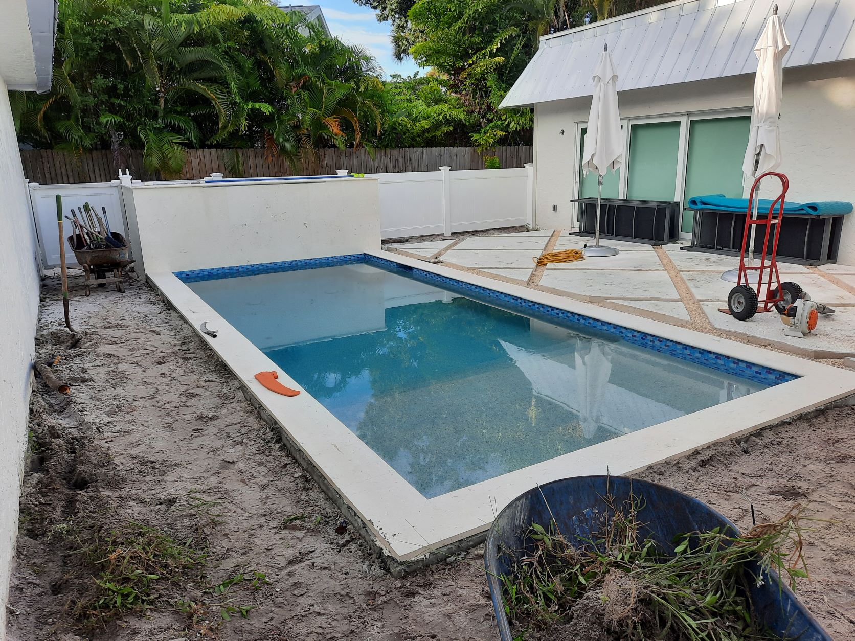 This project features a modern resort style design. Features include maintenance free artificial turf. Tropical plantings, Clusia Privacy Hedge, Foxtail Palms for shade and landscape lighting.