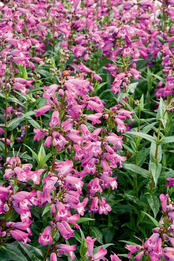 Spectacular tubular bell-shaped deep purple flowers rise above the foliage over a long season, attracting hummingbirds and butterflies. The upright habit and long lasting color make this a great plant for perennial borders, rock gardens and cut flower displays. Herbaceous perennial.