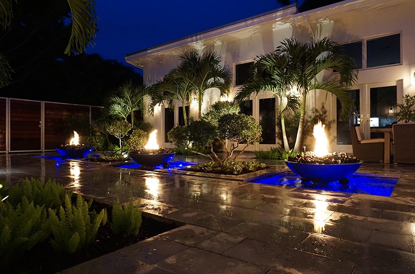 Enjoying your garden at night is a magical experience. A properly designed landscape lighting scheme will enhance your outdoor living space. Softly lit paths and landscape plantings lend a warm inviting outdoor experience. While entertaining your guests on the back lanai around the pool or enjoying a stroll through your Japanese Garden, a well lit landscape extends your outdoor hours.
