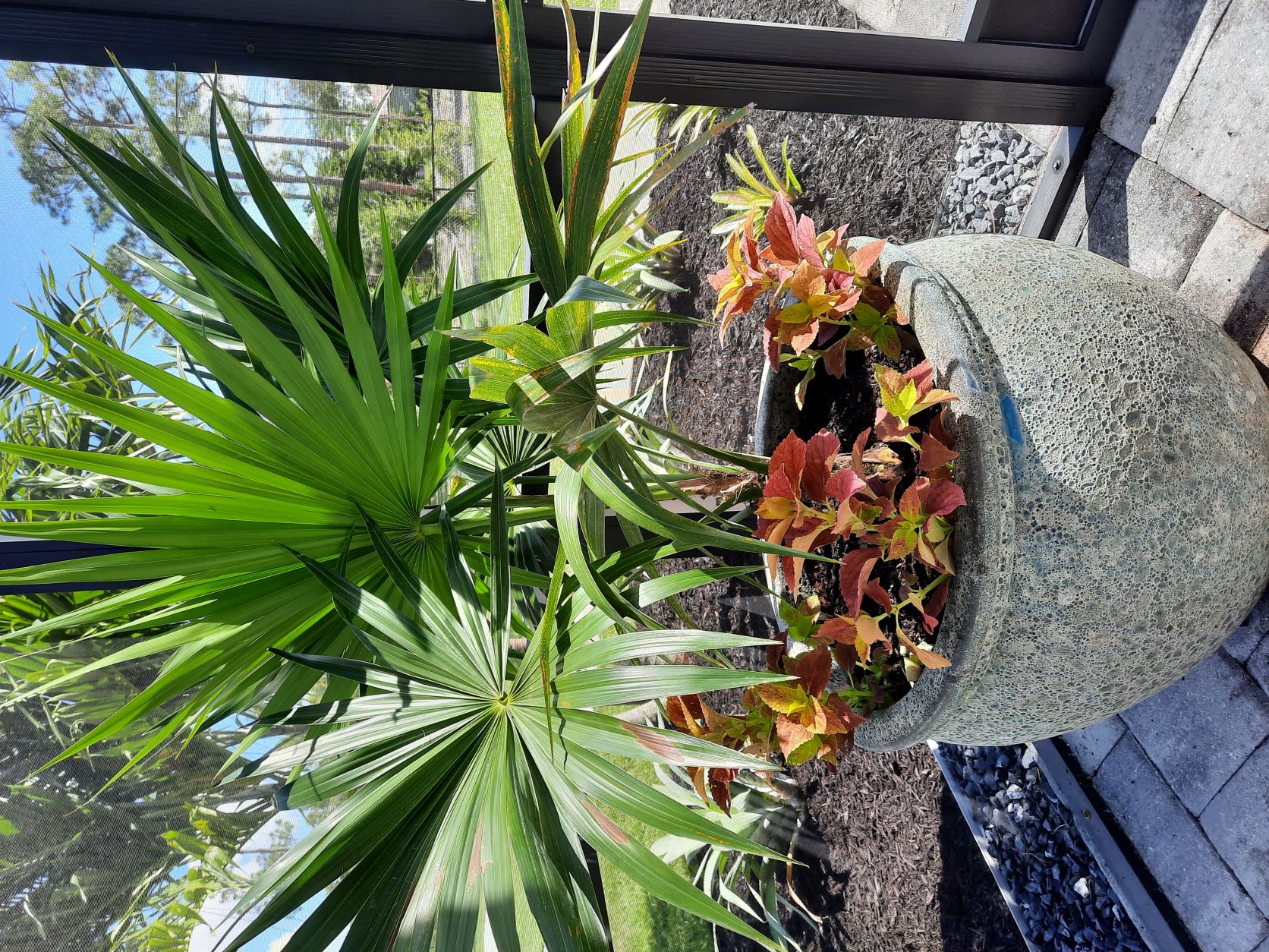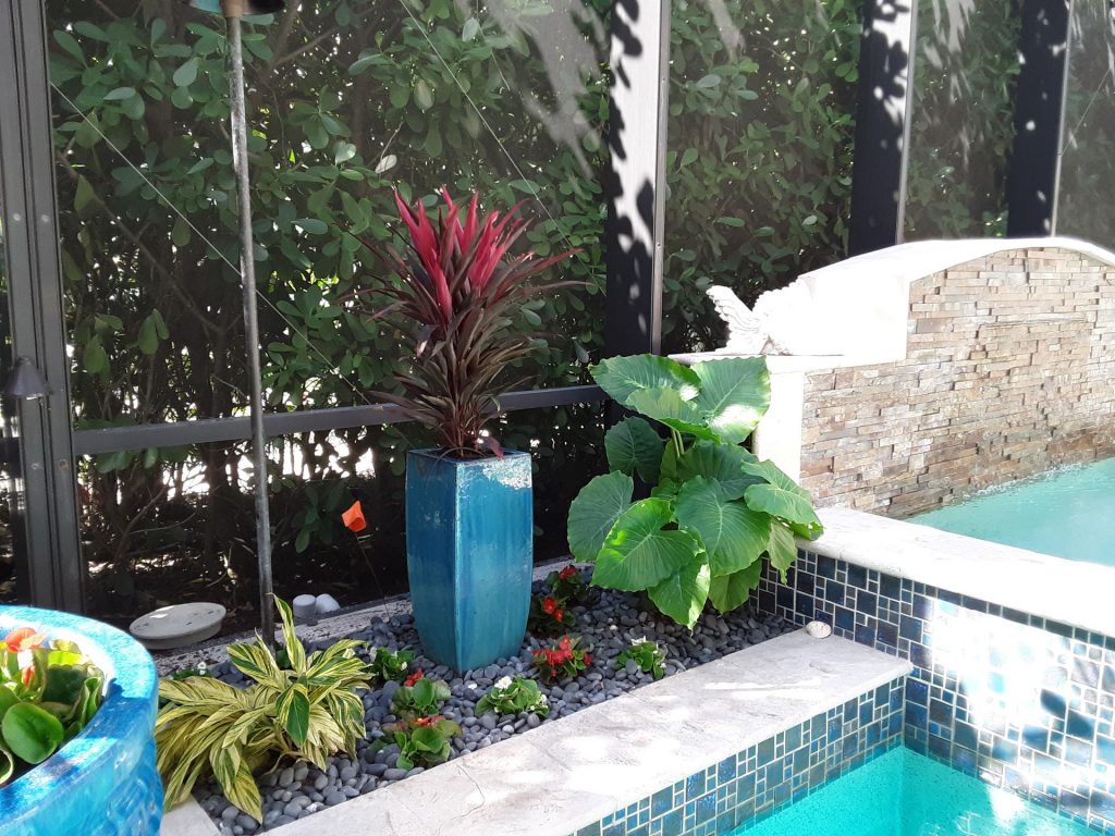 Lanai Ceramic & stone planters are an elegant option for any outdoor entertainment space. Part of the lanai landscaping is the flexibility to install ceramic and stone planters throughout your lanai without having to build raised planting beds. We are even able to plant larger palms into planters.