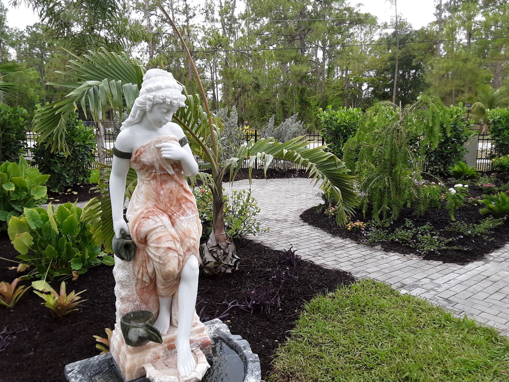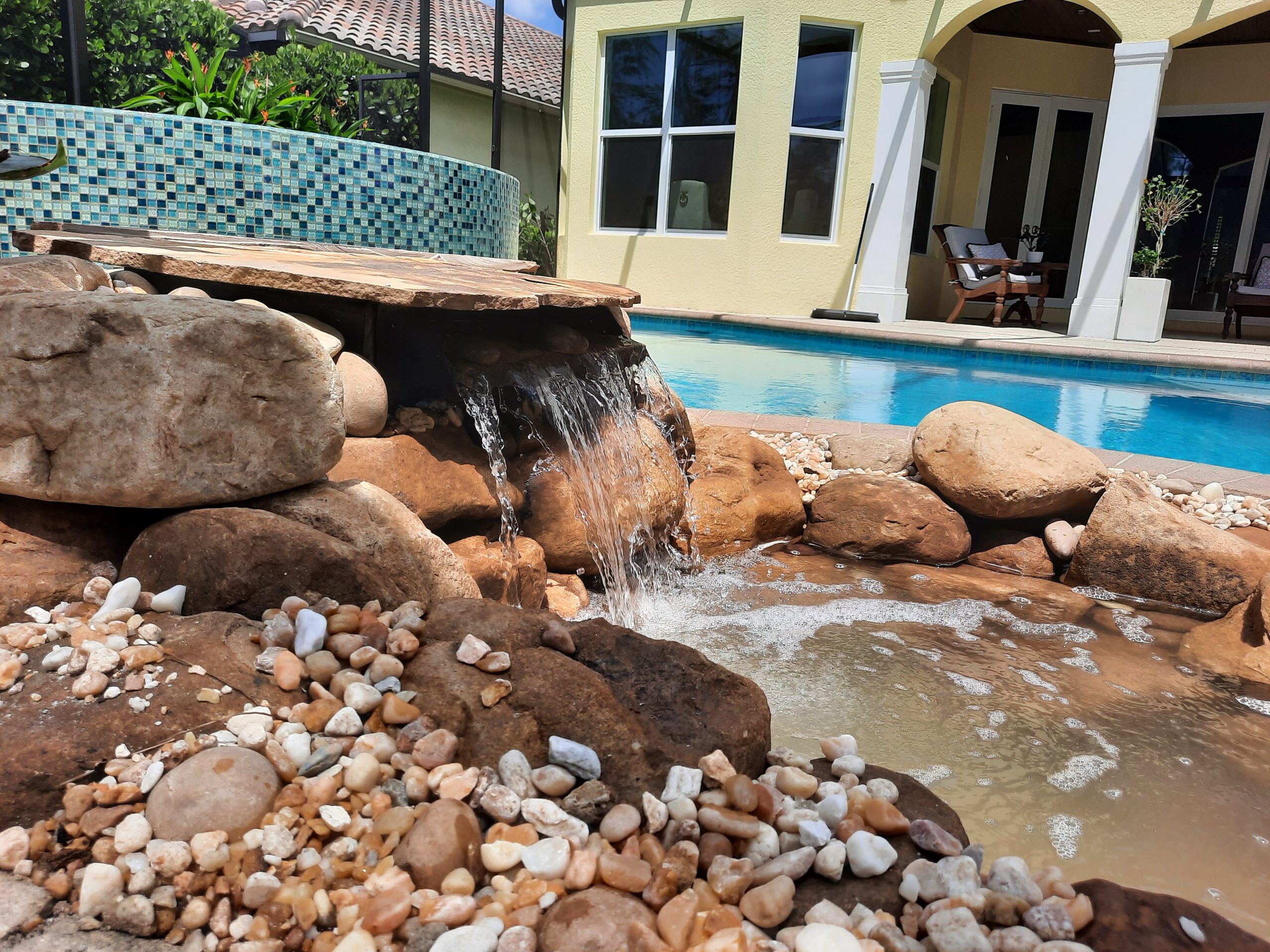 The sky is the limit for style and type of water feature and fountain you select. We have included a few examples of our work. We can professionally set up a water feature to include rock and stone placement and surrounding the entire area with lush tropical garden plantings.